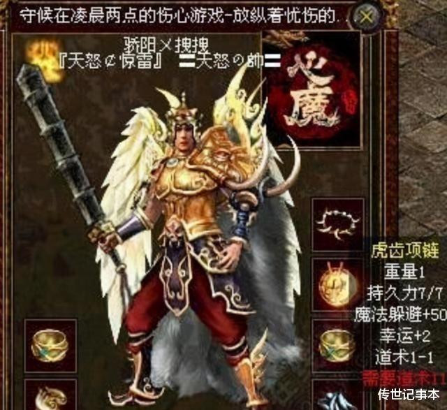 但真正让人魂牵梦萦的,永远是那些传说中的神装。记得当年在一区开天服务器,有个叫”冷月孤星”的道士,他那条虎齿项链简直就是个传说 —— 魔法躲避60%,还带着3点道术,简直就是个移动的幸运星。那时候但凡他一上线,中州城就会被围得水泄不通,大家就是想近距离看看这件神器。